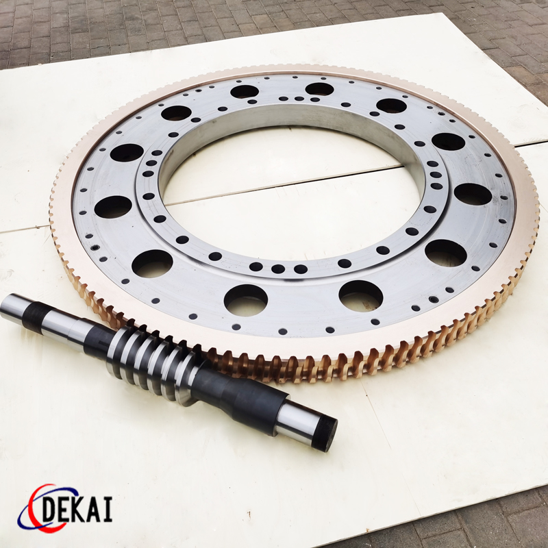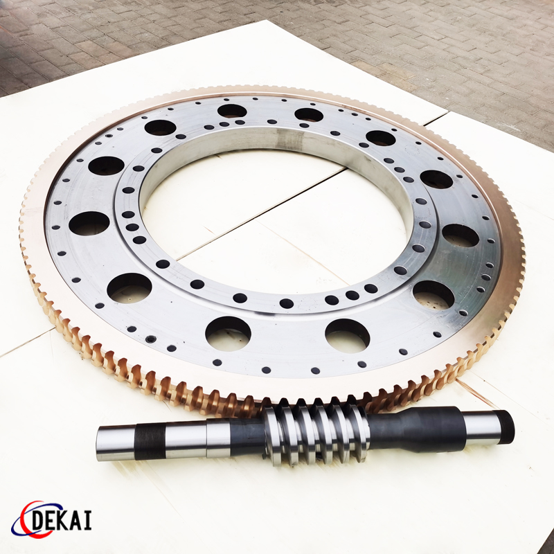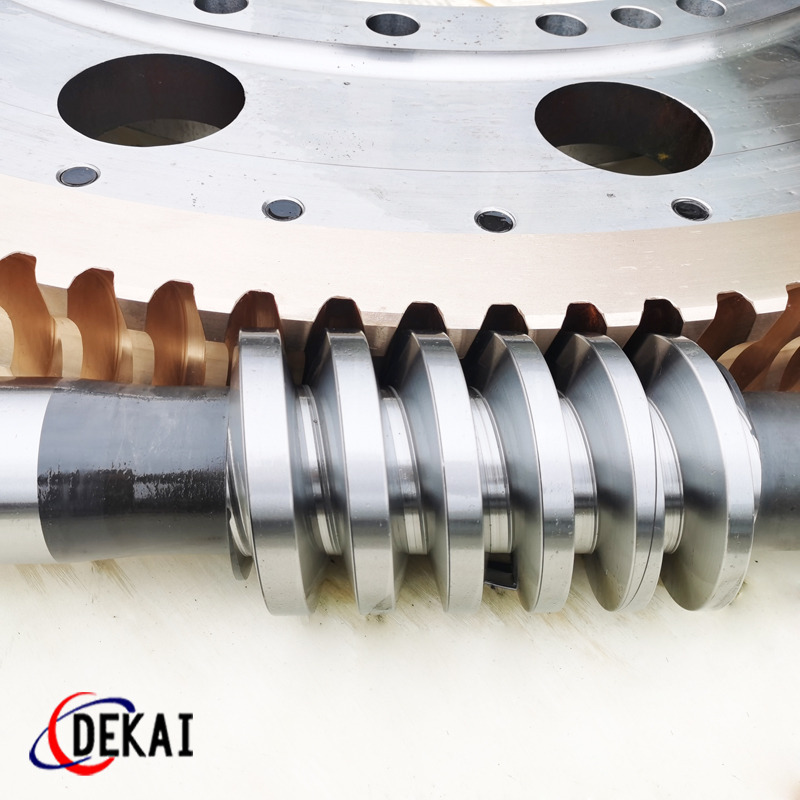 德州德凱減速傳動(dòng)機(jī)械有限公司采用雙蝸桿對消隙原理開發(fā)生產(chǎn)的精密蝸輪蝸桿副,主要用于大型機(jī)床工作臺的驅(qū)動(dòng),高精密分割器等無間隙圓周運(yùn)動(dòng)精確定位場合。該蝸輪副中心距最大可做到2000mm,單節(jié)速比可做到1-365同時(shí)不產(chǎn)生回程間隙。