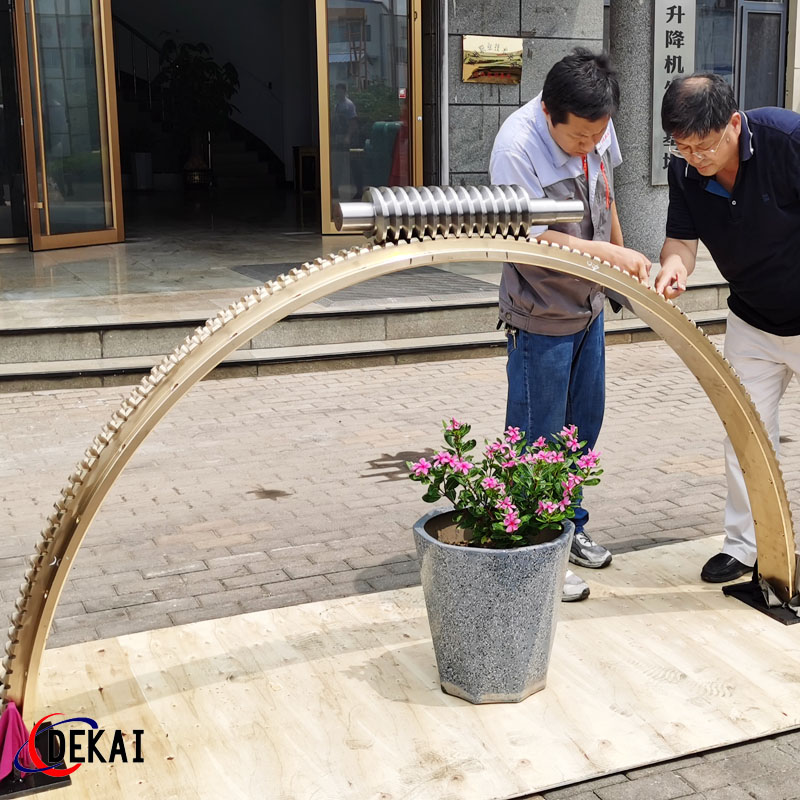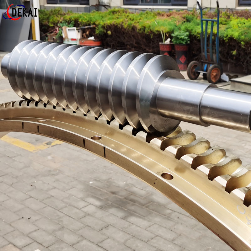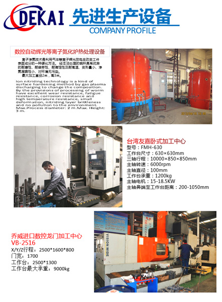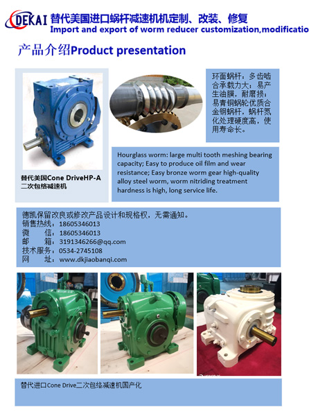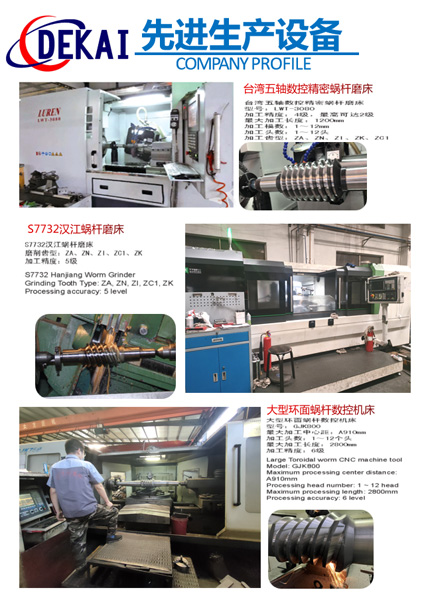德州德凱減速傳動(dòng)機(jī)械有限公司采用雙蝸桿對(duì)消隙原理開發(fā)生產(chǎn)的精密蝸輪蝸桿副,主要用于大型機(jī)床工作臺(tái)的驅(qū)動(dòng),高精密分割器等無間隙圓周運(yùn)動(dòng)精確定位場(chǎng)合。該蝸輪副中心距最大可做到2000mm,單節(jié)速比可做到1-365同時(shí)不產(chǎn)生回程間隙。