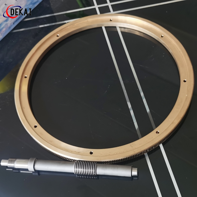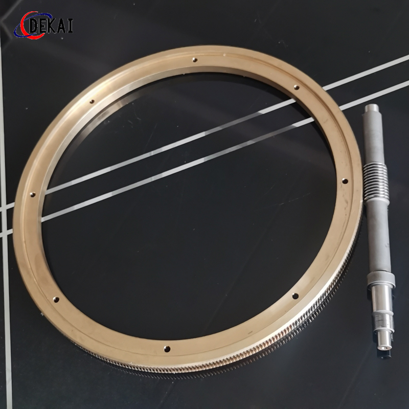 蝸輪系統(tǒng):材質(zhì):蝸輪特殊高強(qiáng)力鋁青銅合金;蝸桿:38CrMoAl合金鋼,正?;鬂B碳HRC60以上。